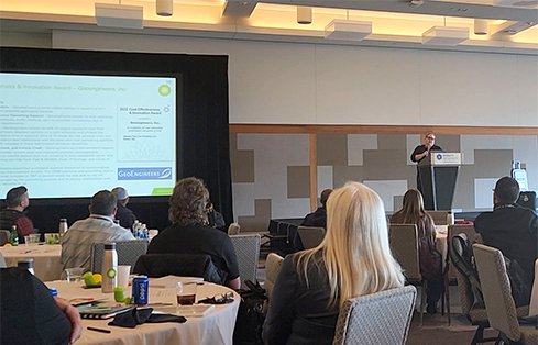 Earlier this month, bp Terminals & Pipelines recognized GeoEngineers’ ongoing permitting and applied geology services for Olympic Pipe Line Company (Olympic) with a 2022 Cost Effectiveness and Innovation Award. Longtime client and partner Olympic nominated GeoEngineers for the award, and bp selected the firm from a pool of its top contractors and consultants in the Pacific Northwest. Associate Geologist Lisa Bona and Geologist Carla Woodworth, who lead GeoEngineers’ work on many Olympic projects, attended the recent 2023 Contractor Safety PNW Forum to receive the award.