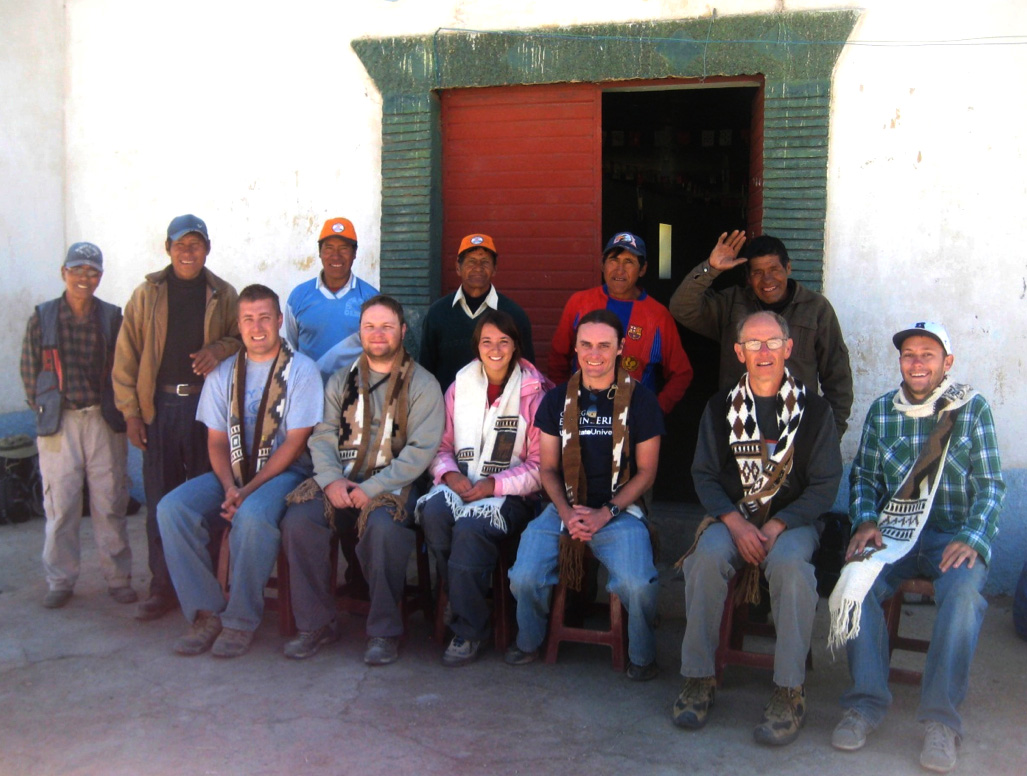 Peru team members (seated, left to right) Shane Robinson, Zach Peterson, Caitlyn Erickson, Shannon Eilers, David Stevens and Jonathan McCulley are pictured above with Tuni Grande community members (standing, left to right) Andres, Miguel, Fabian, Cayetano, Juan and Andres.