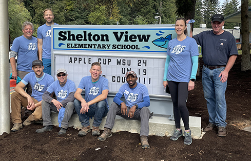On September 28, GeoEngineers continued a 20-year tradition of support for NAIOP Washington State, the Commercial Real Estate Development Association, by participating in its annual Community Enhancement (CE) project. A group of GeoEngineers staff joined more than 200 other volunteers from the real estate community, including many of our clients and project partners, to spend their Saturday doing clean-up and light construction at Shelton Elementary School in Bothell, Washington.