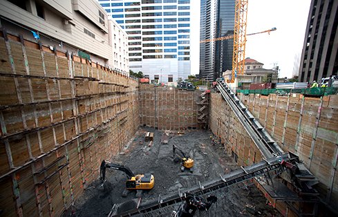 GeoEngineers' development team provides geotechnical services for deep urban excavations like this one.
