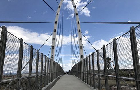 The University District Pedestrian Bridge was designed as an impressive 120-foot-tall, cable-stay bridge.